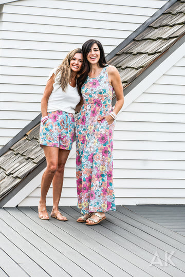 A staple tank style maxi for your wardrobe for SURE! Super soft and comfy with pockets! Playful floral pattern with slightly muted summer colors with plenty of pink, teal and orange. Pair it with a jean jacket for those cooler...