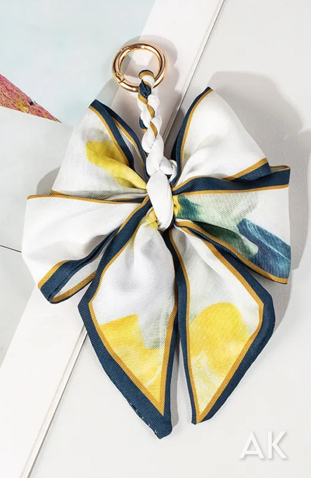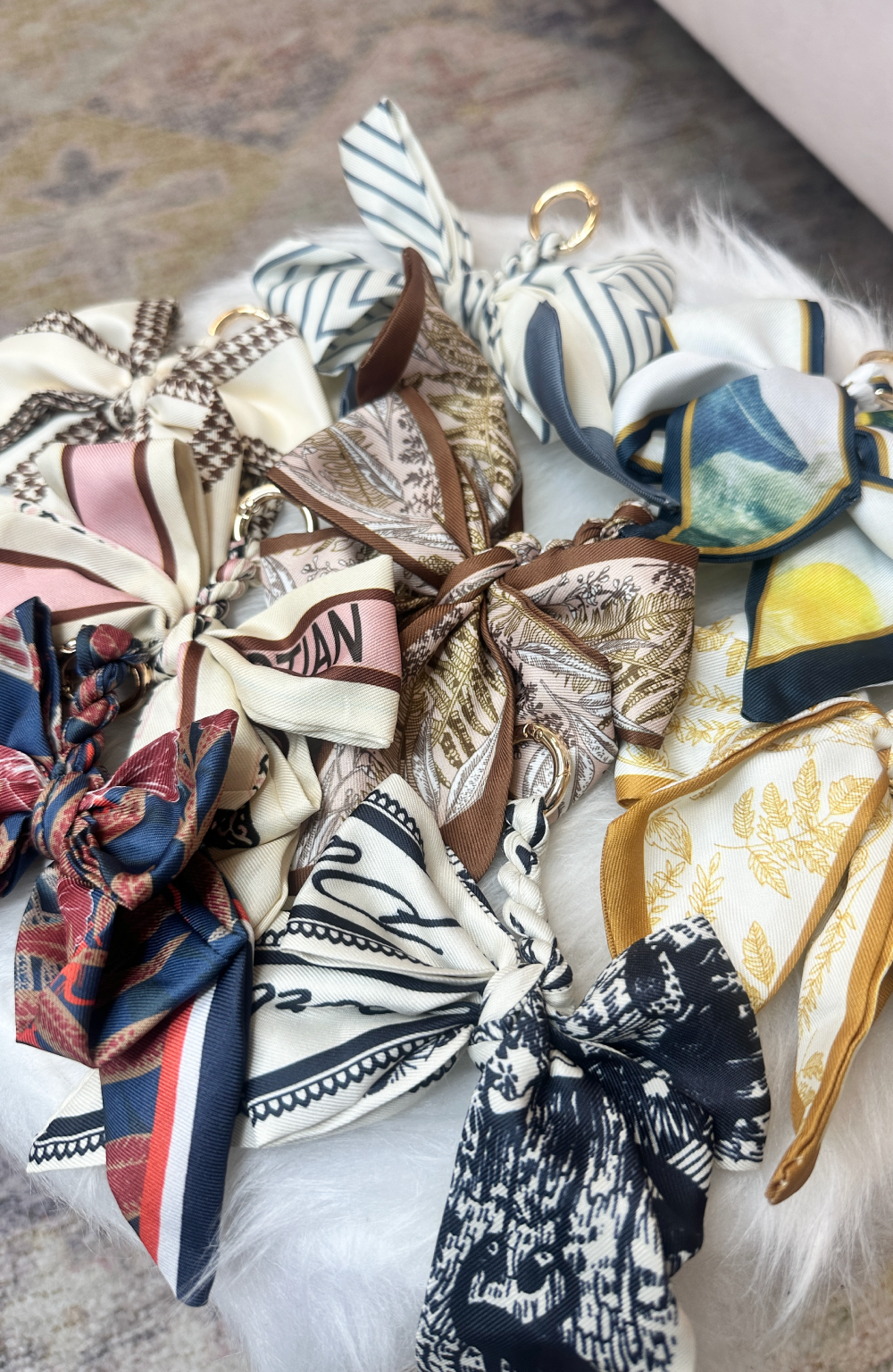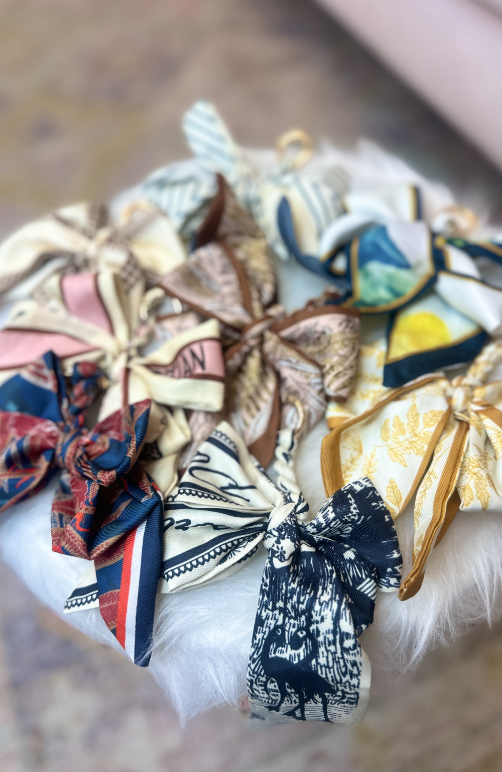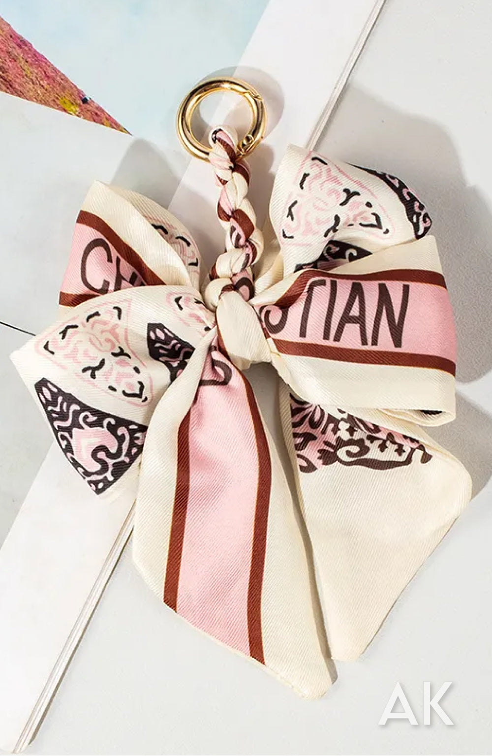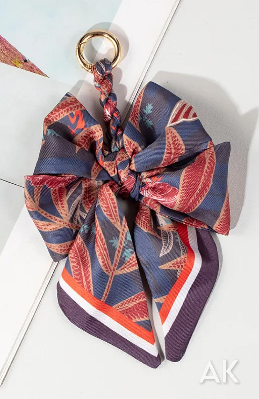 Silk blend scarf braided and tied for a double bow