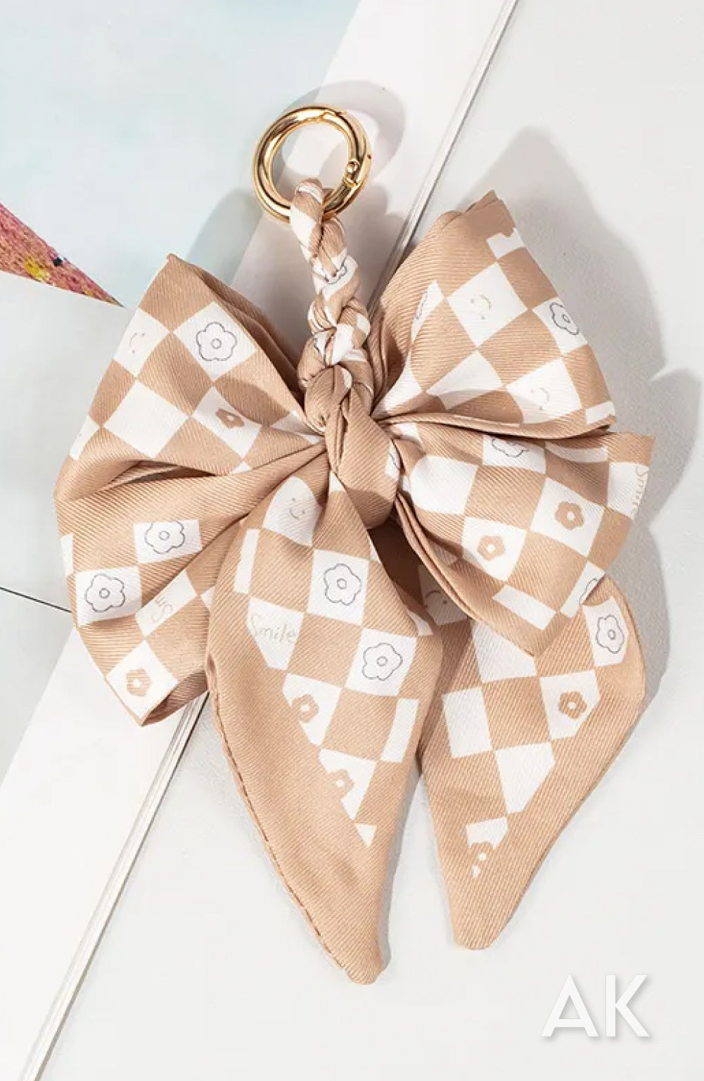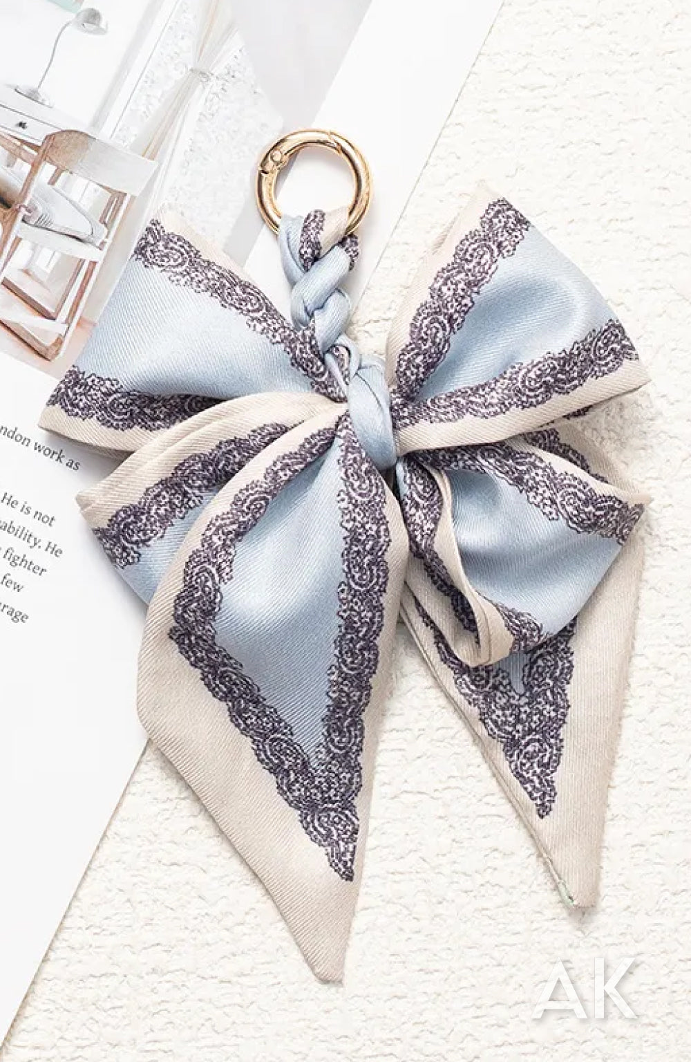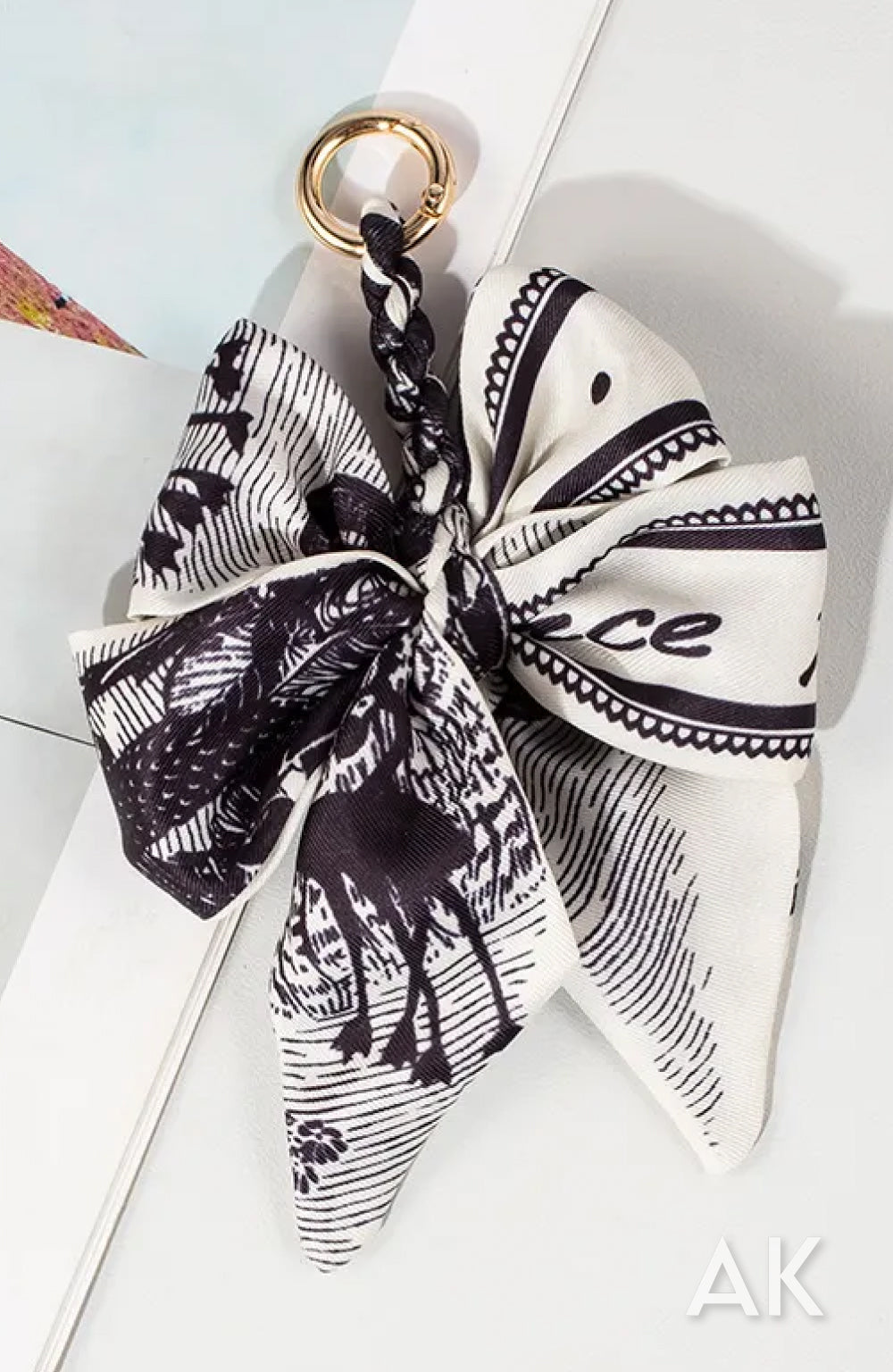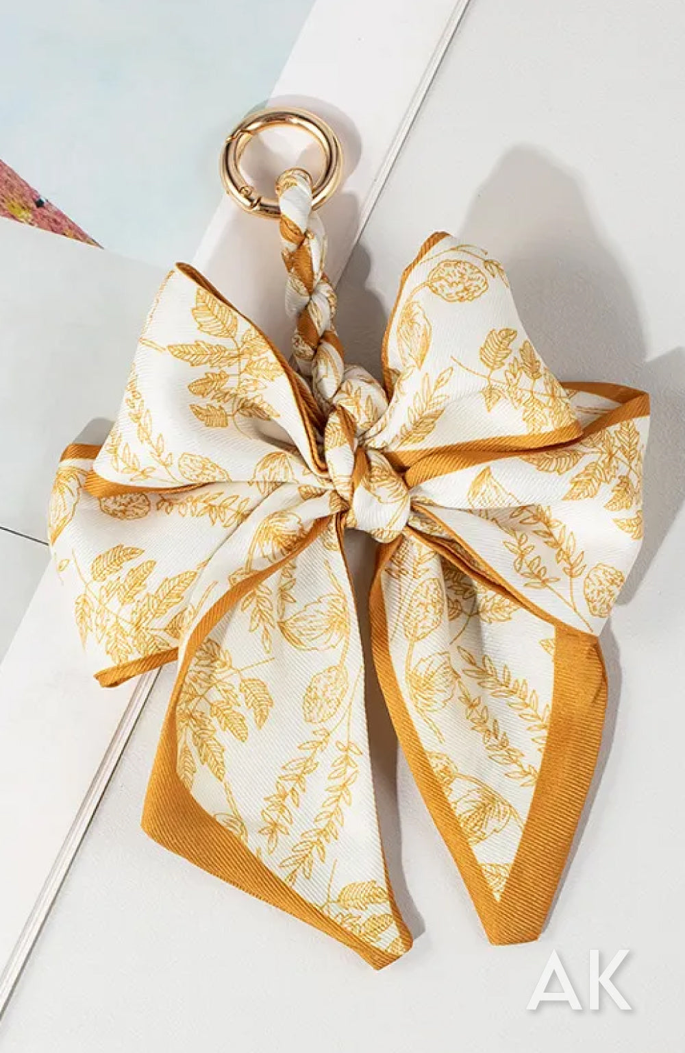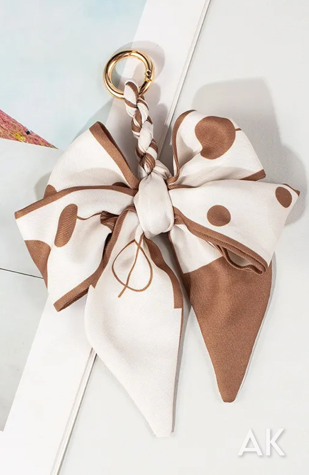 Silk blend scarf braided and tied for a double bow