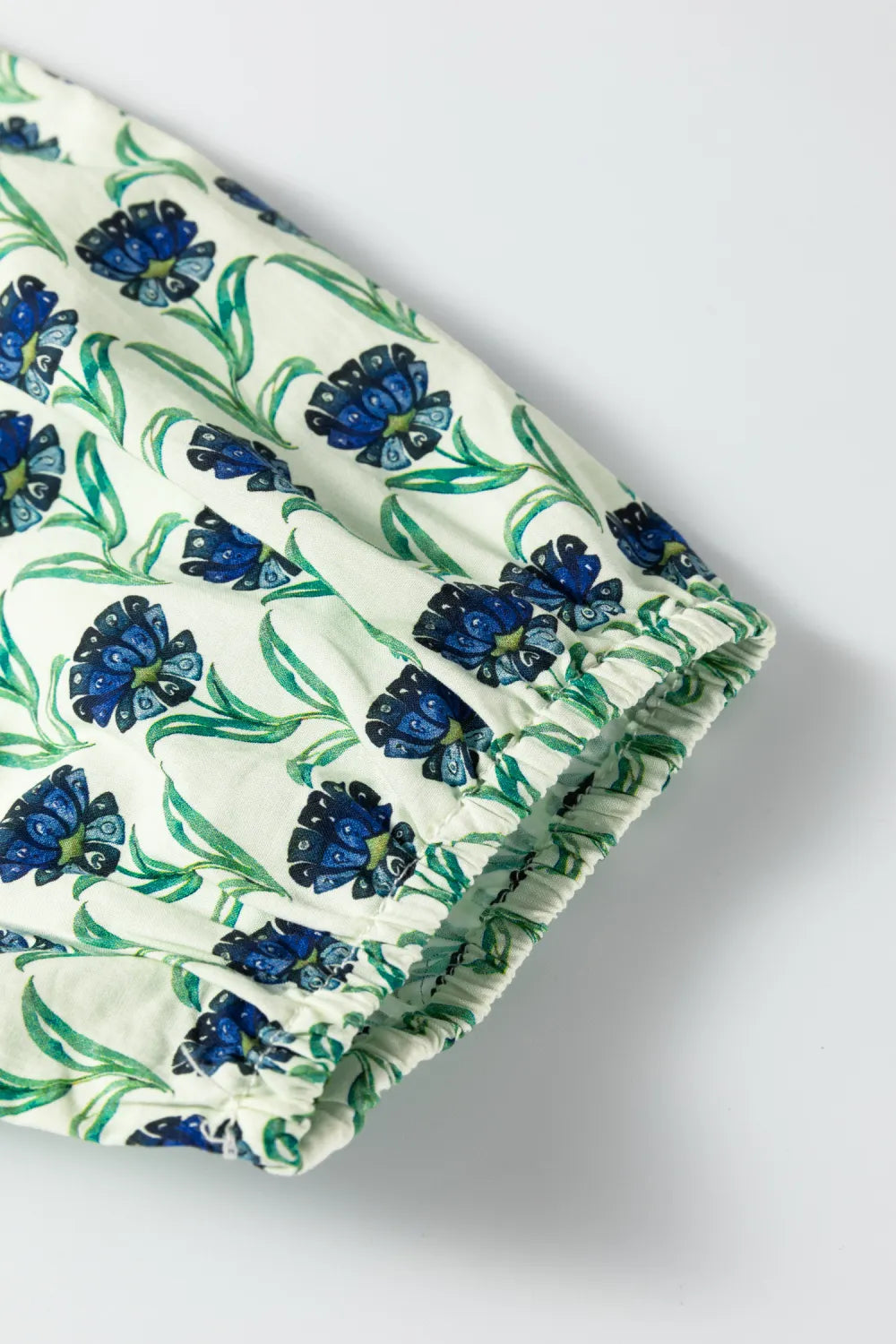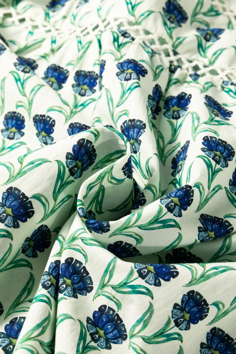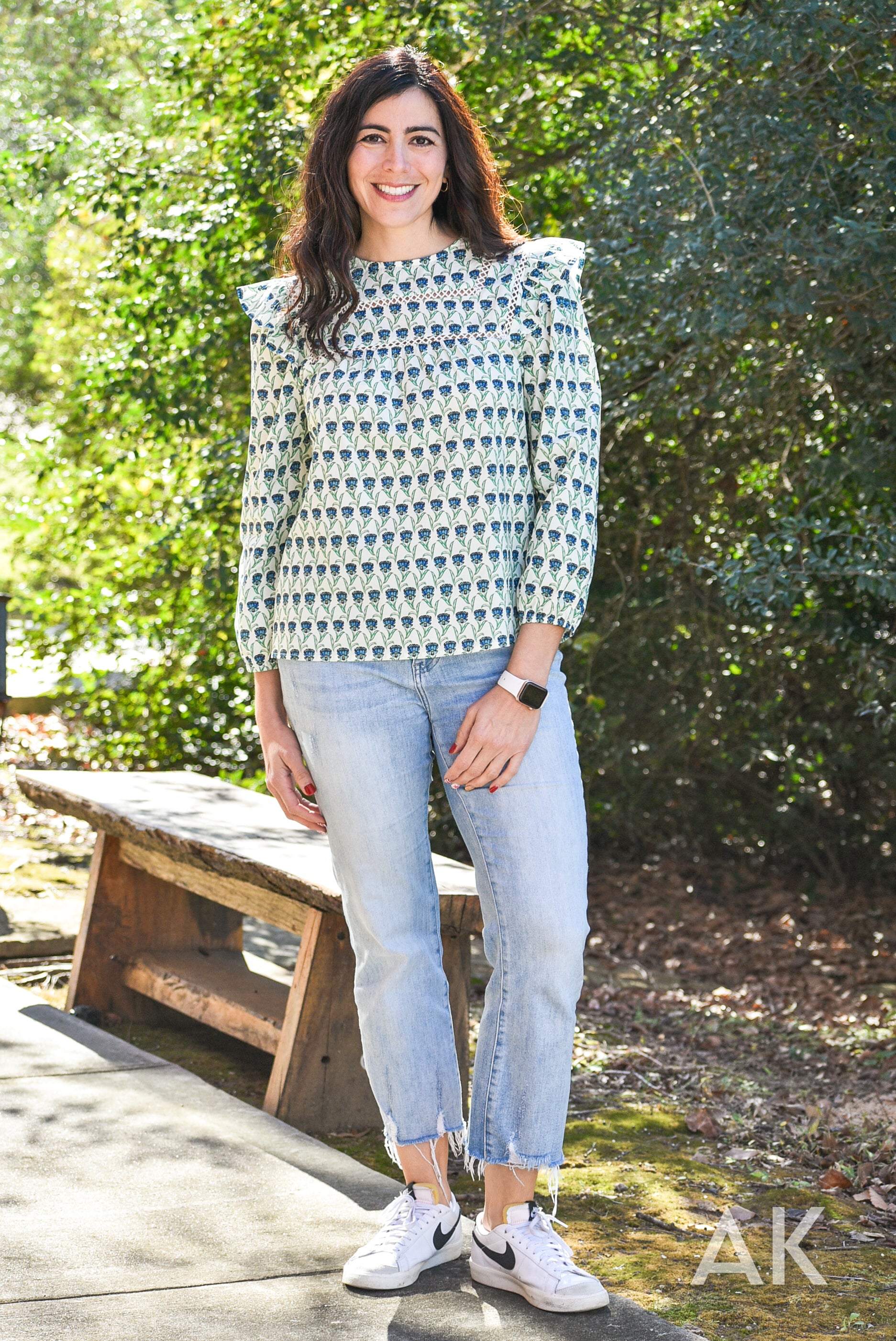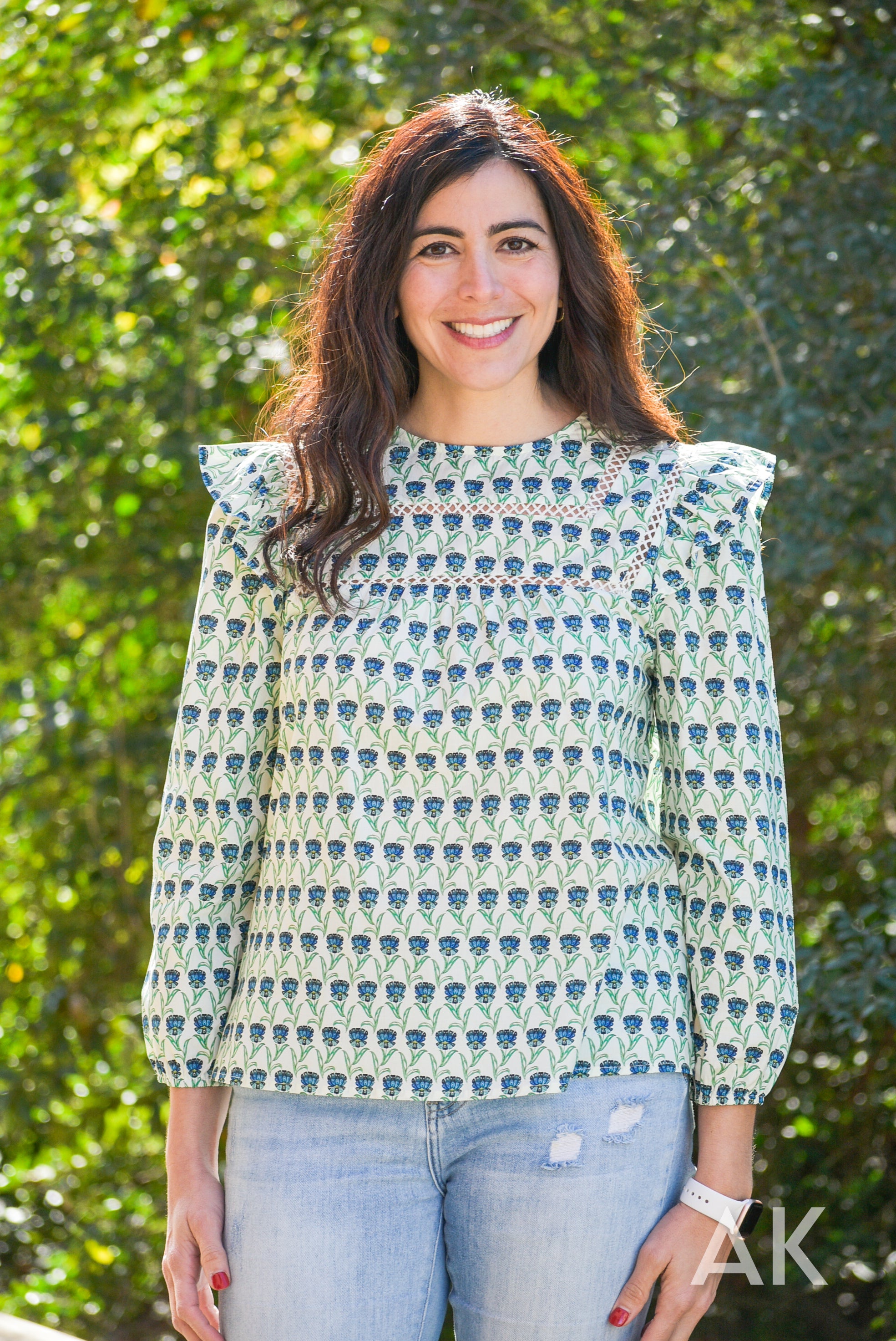 Marlowe is such a charming blouse with a blue floral pattern. The lace trim around the neck and ruffle at the shoulders give it just the right amount of detail. It's perfect for pairing with your favorite denim for a put together look!