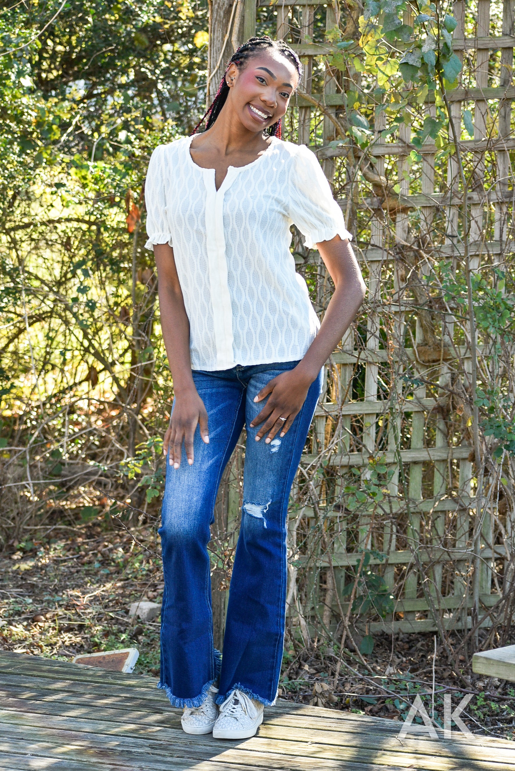 Allegra is the perfect top for heading into spring! We love the puff ruffle sleeves and the solid color is so good for a clean and polished look.