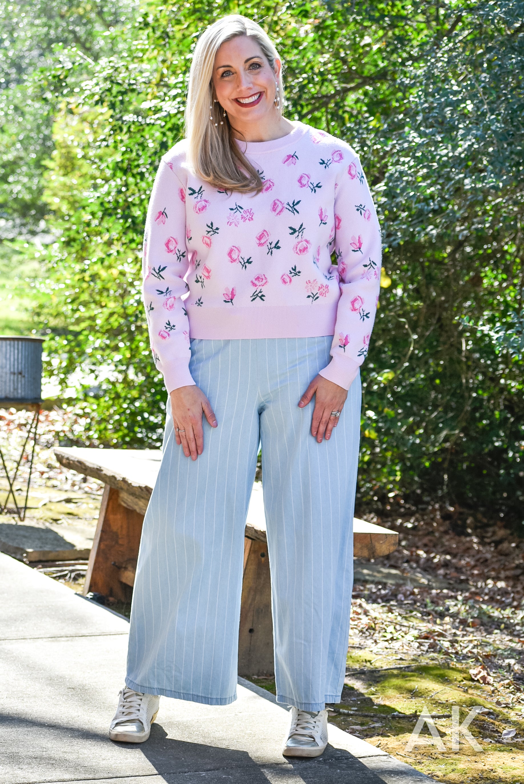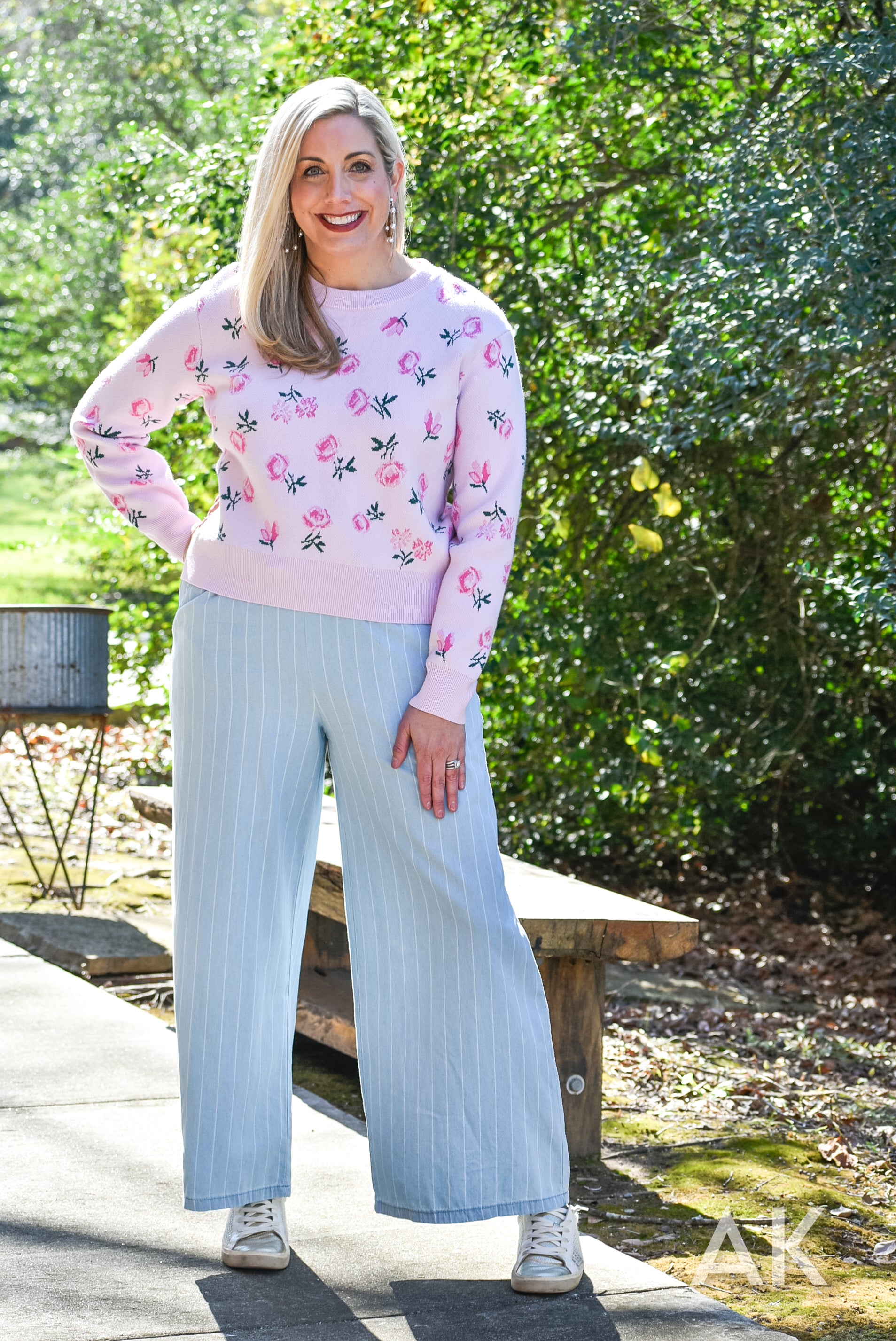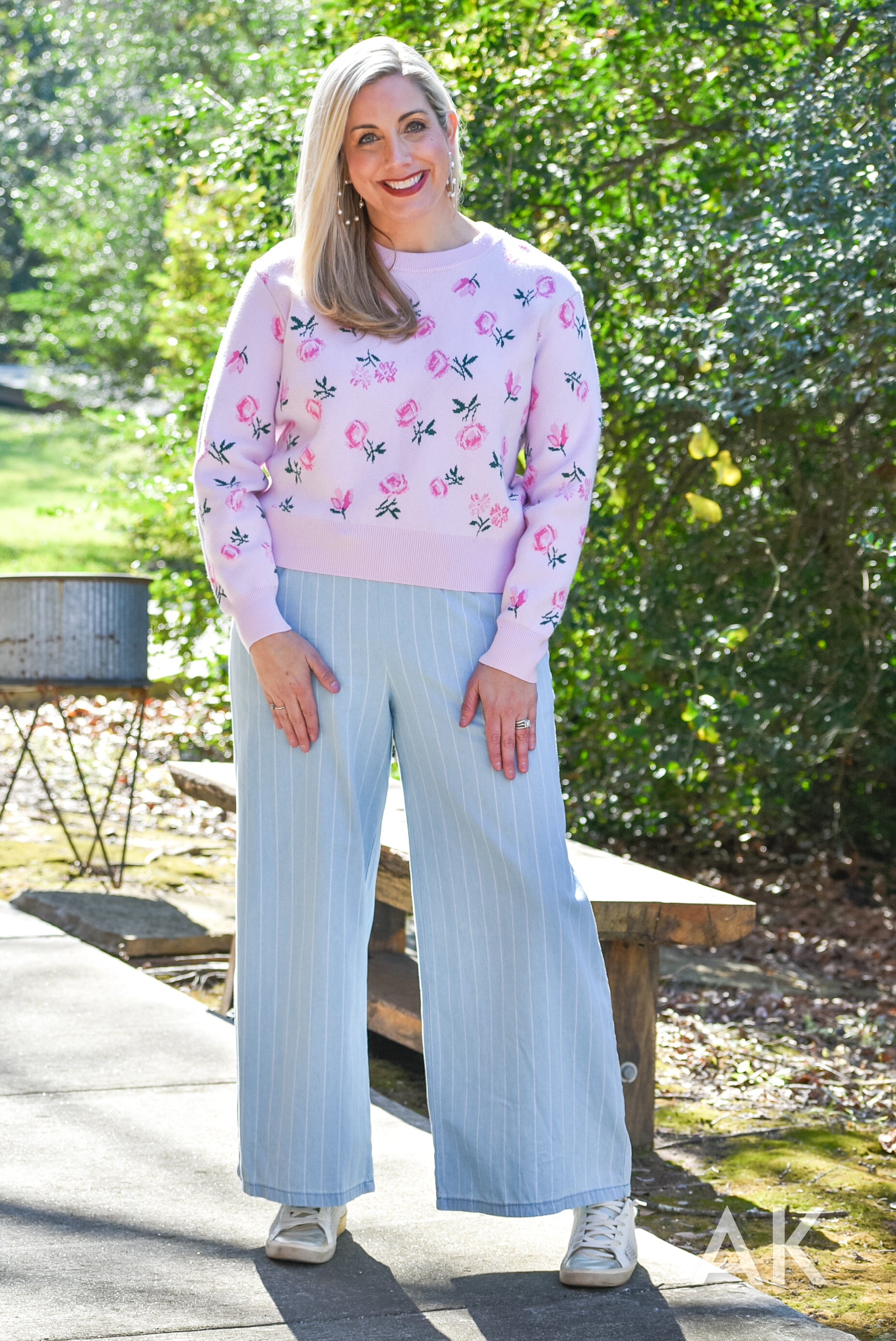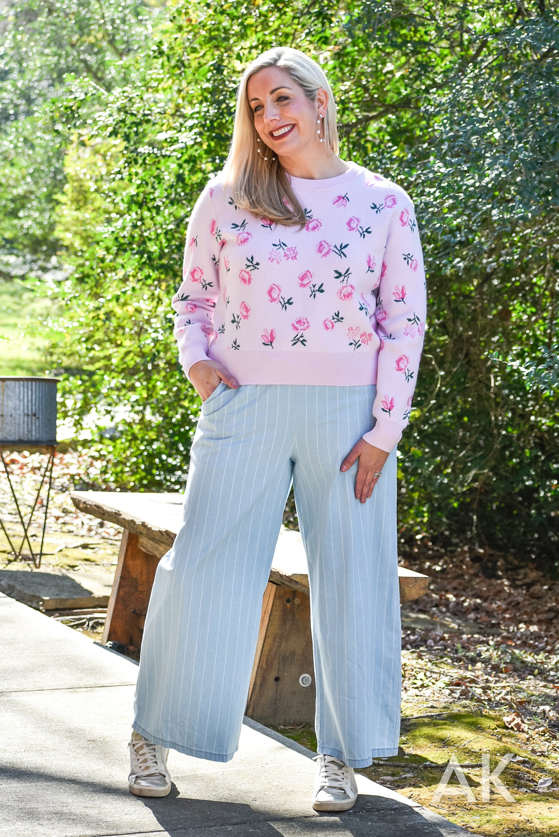 We love these easy going, wide leg trousers. The classic pinstripe design and tencel fabric paired with the elastic waist make these so easy to wear! If you're between sizes, we recommend sizing up.