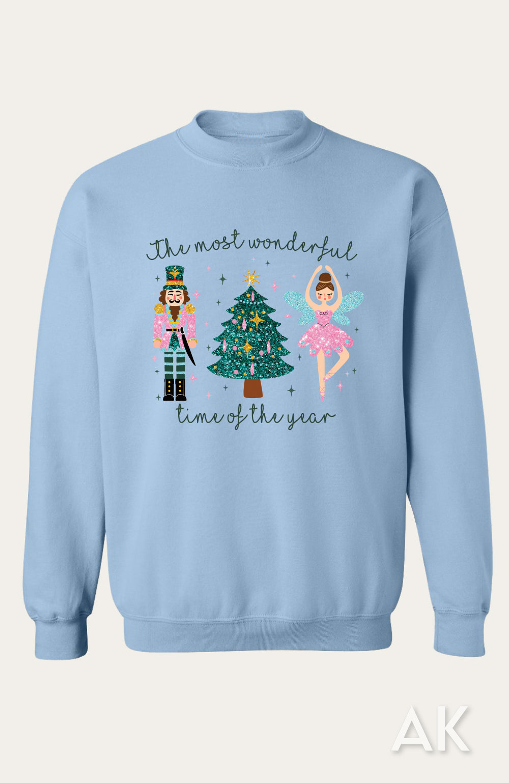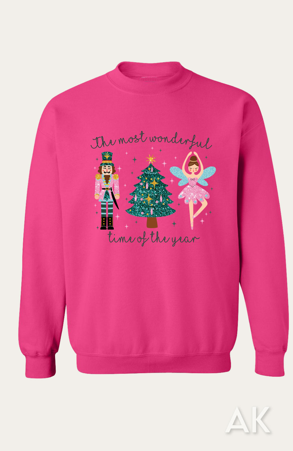 Holiday Graphics Collection. Full color design printed on our comfy 50/50 fleece crewneck sweatshirt in professional DTF ink.